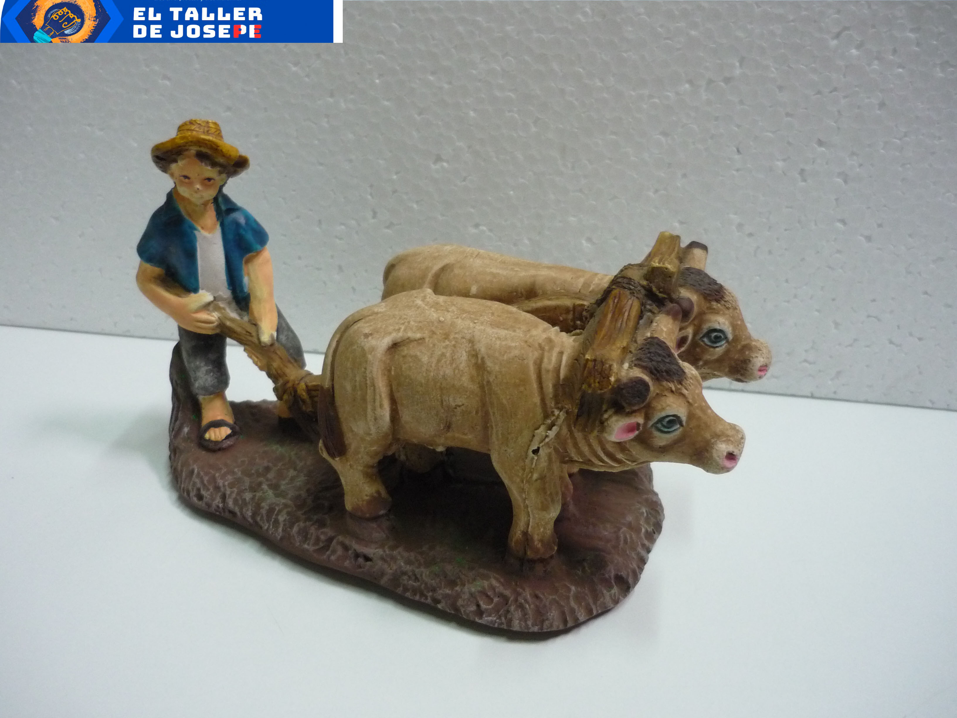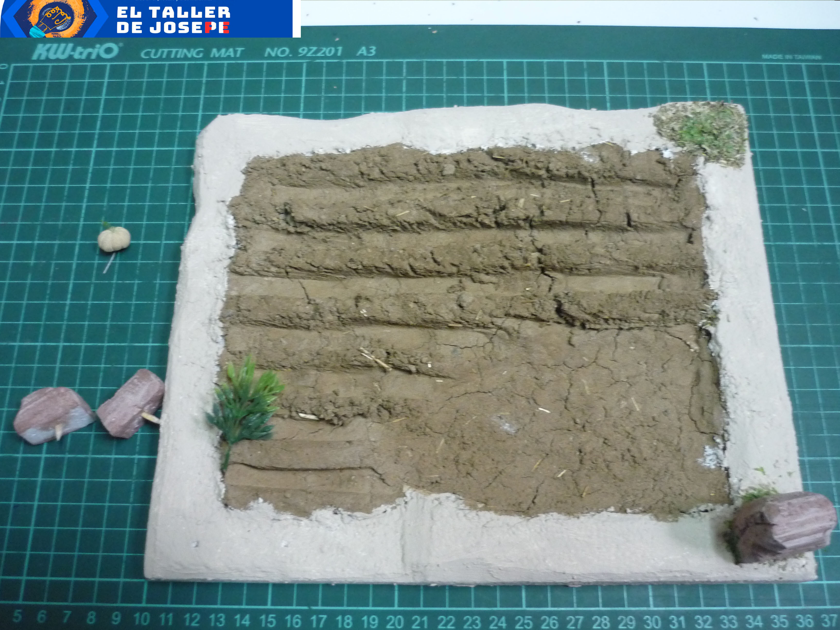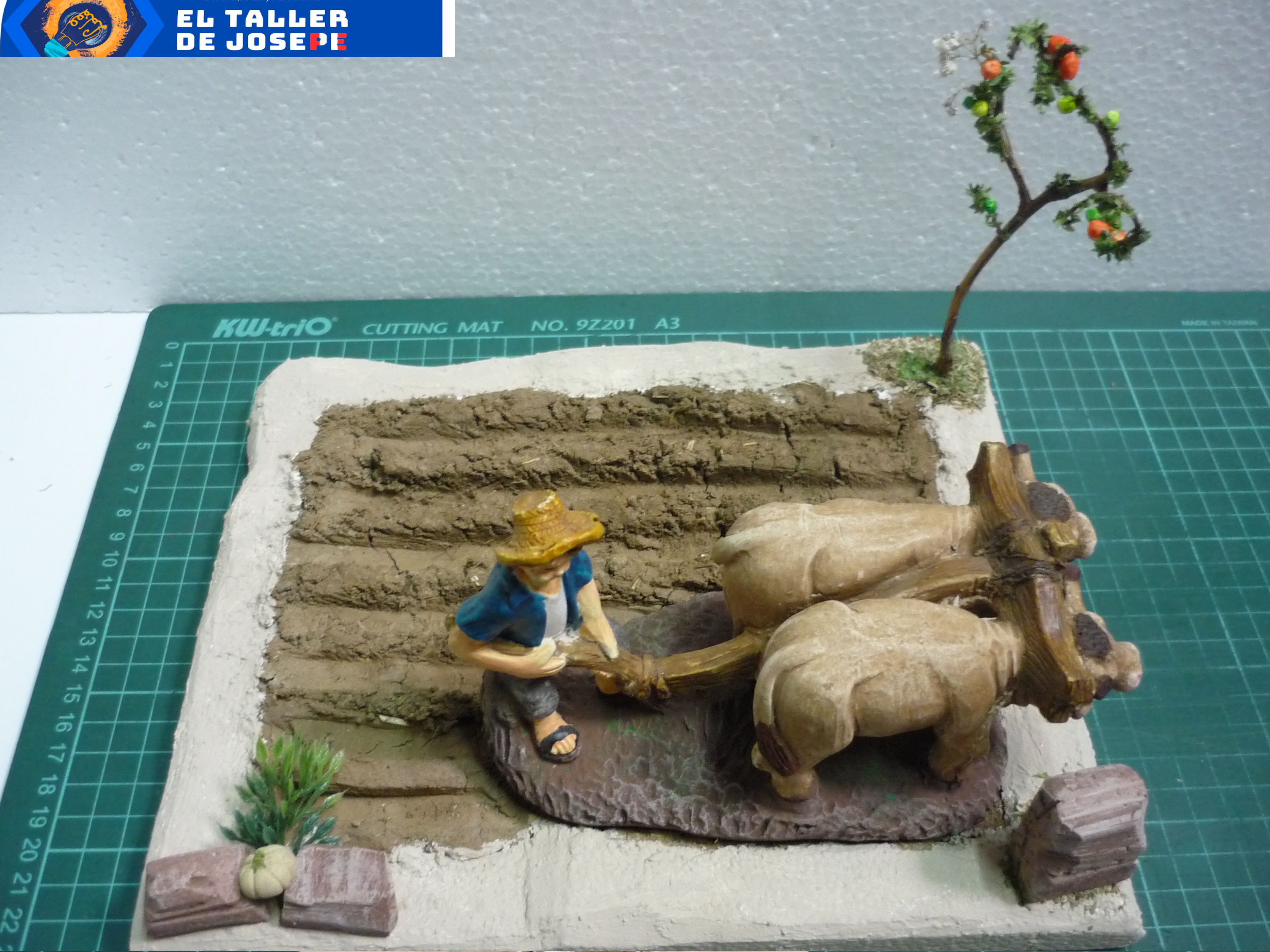 Hola soy nuevo el en el foro, espero estar publicando bien este mini tutorial en fotos, ahí les va. Me regalaron una figura de dos bueyes con la yunta, pero la peana de esta era verde y pues si la yunta es para hacer labor de mover y hacer surcos en la tierra pues no me hacia sentido, así que la pinte de un tono mas terroso aunque deje intencionalmente unas manchitas del verde original como recuerdo de plantas, tal vez mala hierba que pudo crecer antes de iniciar el trabajo en el campo. Hasta ahí ya estaba peeeero, pues no tenia donde poner la figura y decidido a ello me puse a ver por aquí y por aya y termine haciendo este campo que les muestro a continuación.