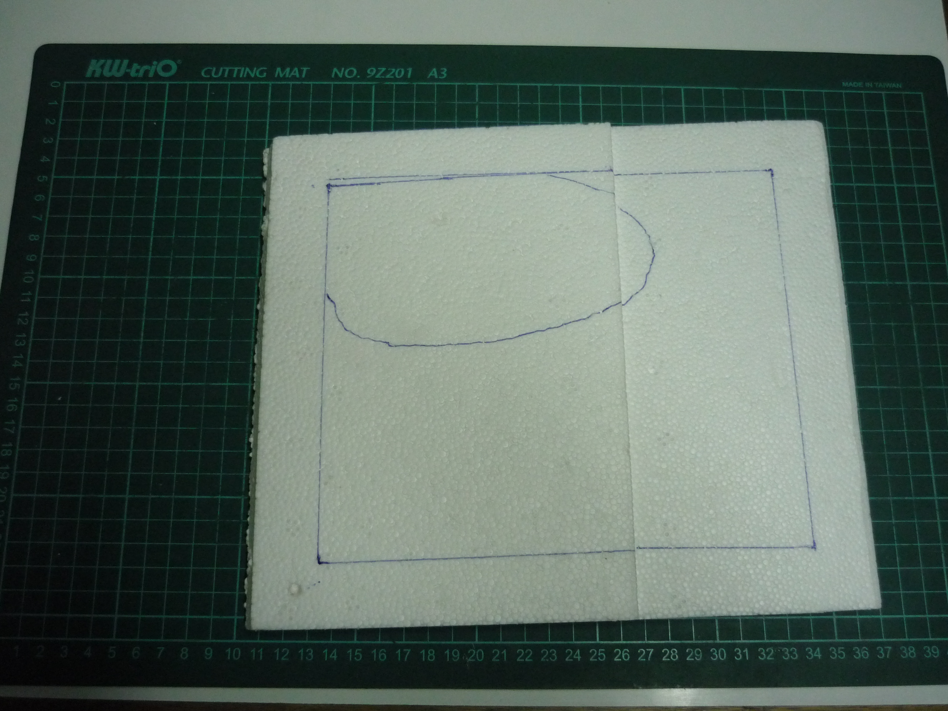 Iniciamos midiendo nuestra peana en un porex de 1" de espesor dejando 2cm de cada lado a manera de marco.