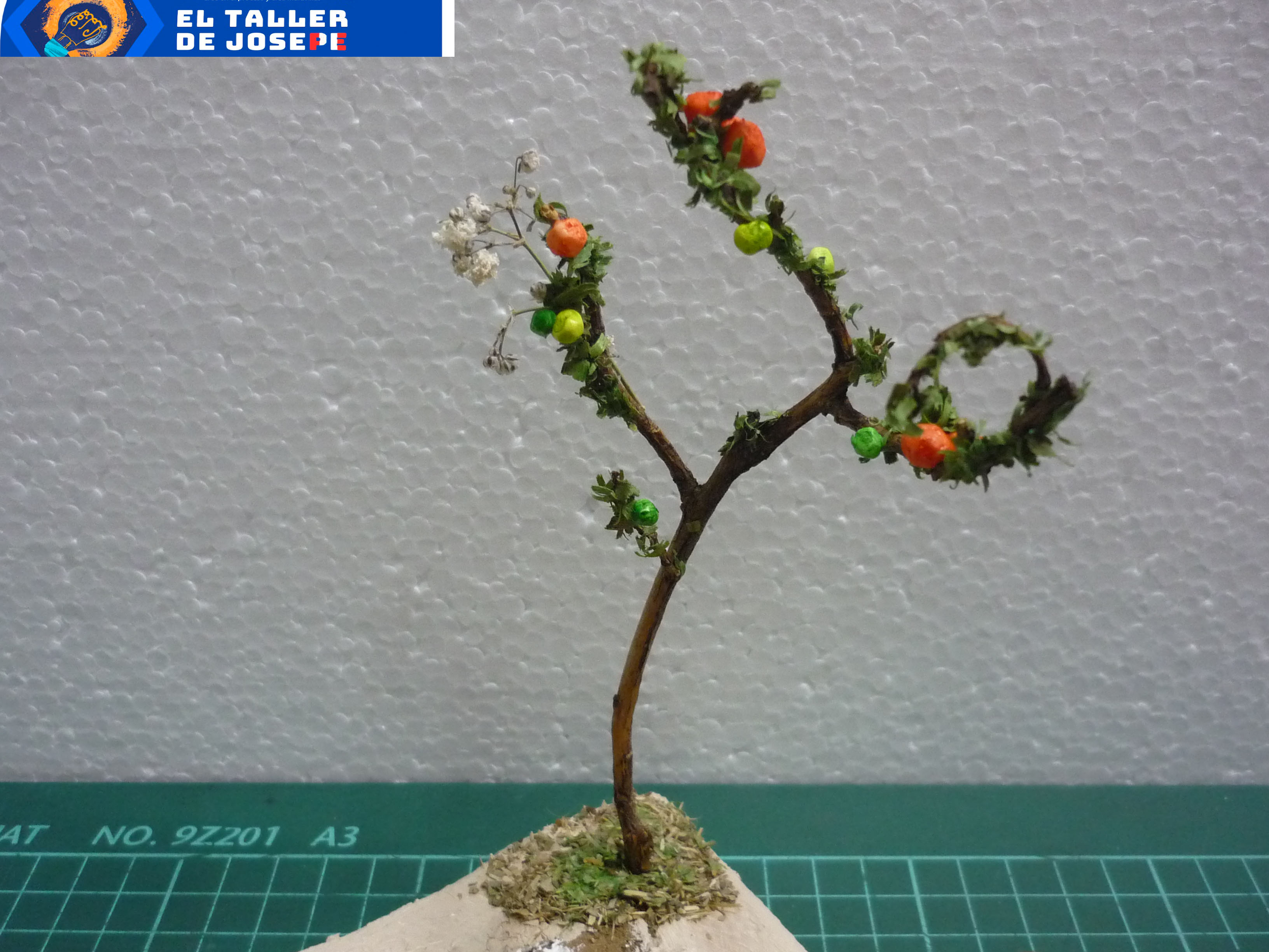Ahora para complementar el campo con unos trozos de porex hermos unas rocas, pondremos unas plantas de pecera, con una ramita haremos un arbolito y con cerámica en frío hacemos una verdura o fruta (en este caso en mi pueblo se producen zapallos asi que hice uno).