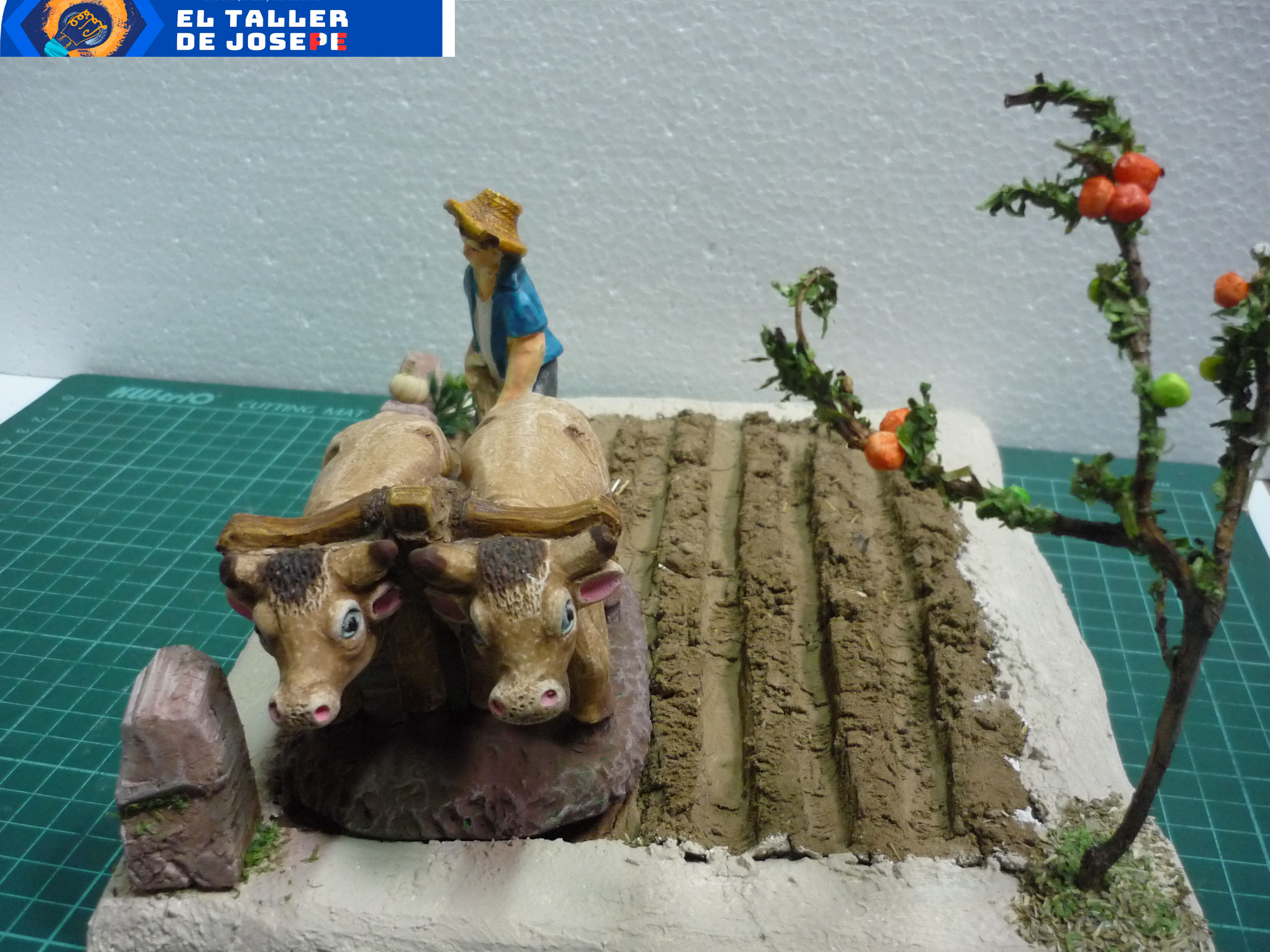 Hola soy nuevo el en el foro, espero estar publicando bien este mini tutorial en fotos, ahí les va. Me regalaron una figura de dos bueyes con la yunta, pero la peana de esta era verde y pues si la yunta es para hacer labor de mover y hacer surcos en la tierra pues no me hacia sentido, así que la pinte de un tono mas terroso aunque deje intencionalmente unas manchitas del verde original como recuerdo de plantas, tal vez mala hierba que pudo crecer antes de iniciar el trabajo en el campo. Hasta ahí ya estaba peeeero, pues no tenia donde poner la figura y decidido a ello me puse a ver por aquí y por aya y termine haciendo este campo que les muestro a continuación.