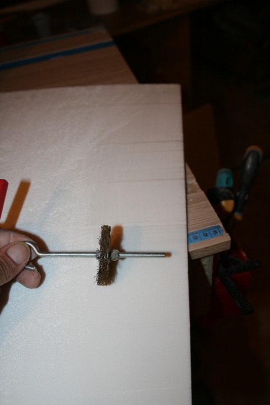 Cojo la plancha de porex y la dejo al grosor deseado,despues de lijarla le paso un disco de puas de alambre pequeño al cual le he puesto una varilla roscada con una tuerca a cada lado para que no salga y lo paso rodando por la plancha tanto como quiero y solo queda cortar a la medida deseada y lijar los cantos