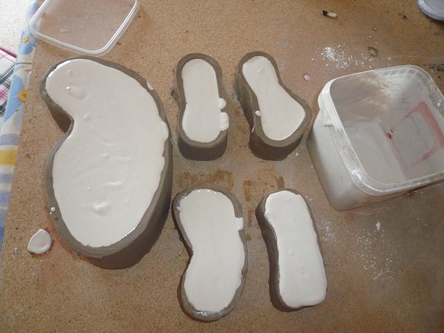 Dejar al menos una hora minino para quitar las paredes de la caja que hemos y damos la vuelta a la pieza y volvemos a hacer la misma operacion. Hacemos su caja y apretamos las paredes bien sobre la base del molde para que no se salga la escayola.