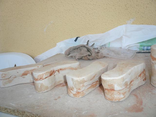 Volvemos a hacer la misma operacion con la escayola, vertemos sobre la pieza encajada y dejamos al menos minimo una hora antes de quitar la pared de la caja y desunir las piezas, si dejamos mas tiempo mejor. Tener en cuenta que la impaciencia es el mayor enemigo de estos trabajos, pero con la practca a prendereis a manejar los tiempos.