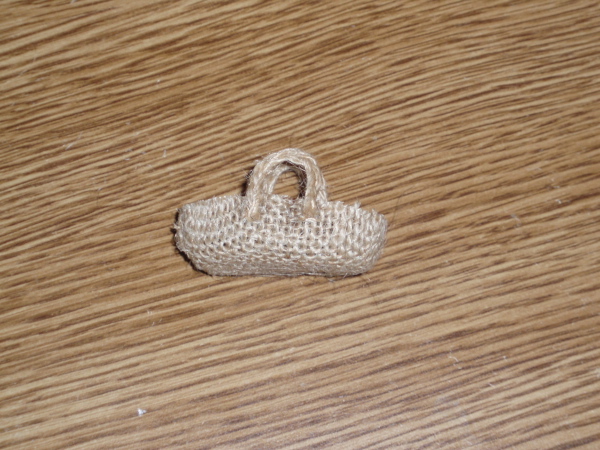 Dejamos secar completamente.“Desmoldamos” la tela de saco con cuidado y recortamos la cesta a nuestro gusto.