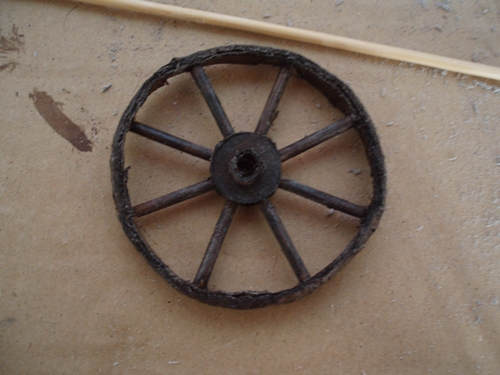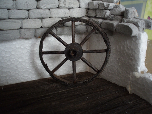 hola forer@s.he intentado hacer una rueda de carro que parezca vieja.esta hecha de carton con palitos de los pinchitos.No esta paratirar cohetes pero puede servir para mi pesebre en ruinas