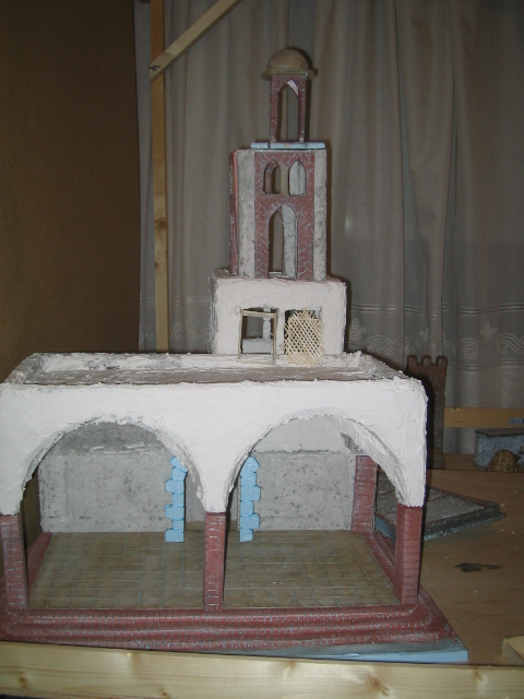muchas gracias, por vuestra información, la verdad que al final estoy haciendo una torre, tipo giralda tipo alpendiz de badajoz, un batiburrillo, me imaginaba que en esa época no habia torres, mucho menos mezquitas, pero como este arte es un poco libre....yo le he encajado una, espero que no os moleste mi decisión.