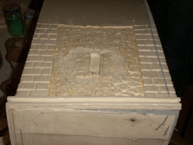 En cuanto a la fuente,sólo va trabajada y pintada.La de verdad es lisa,por lo que la copia debía serlo también.