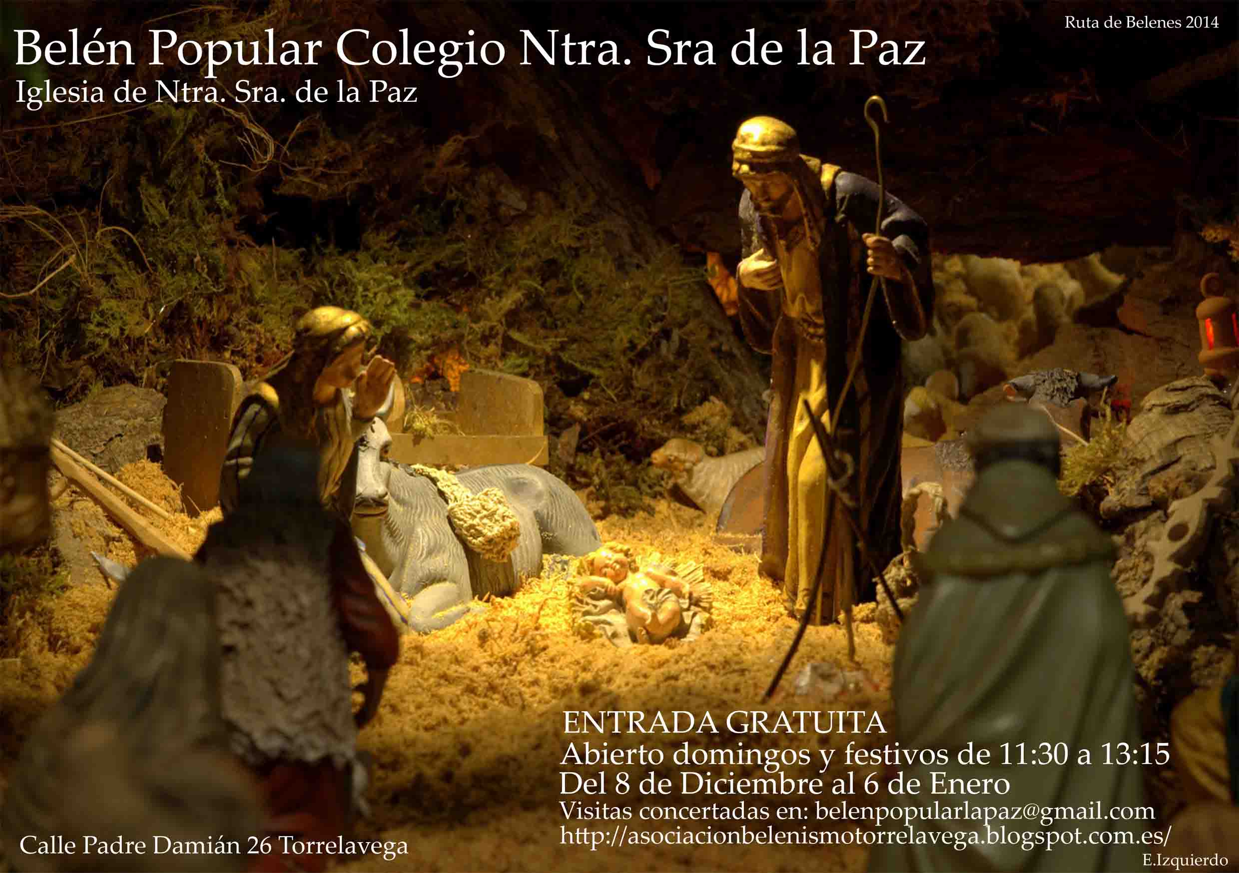 Belén instalado en la iglesia del colegio Nuestra Señora de la Paz en Torrelavega, en la calle Padre Damián 26. Se visita Domingos y Festivos de 11:30 a 13:15 desde el 8 de Diciembre al 6 de Enero. Para concertar otros horarios, preguntar en