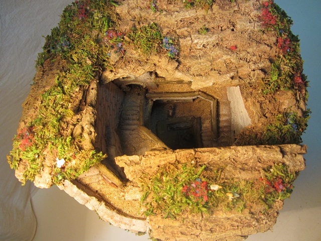 ...como ya os he dicho estoy dando un "repaso " a mis Nacimientos. Ahora le ha tocado el turno a uno que hice dentro de un tronco hueco,cerrado para figuritas de Castells de 3.5 cms. con corcho, aún no trabajaba con el porespan. En la foto, el interior no se puede apreciar, pero hay una escalera que va subiendo hasta arriba con un balconcito hacia la mitad. Ahora parece otro, le he cambiado el color,el musgo,y le he colocado 3 mini pajaritos,espero que os guste. Un saludo