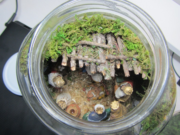 ..si os fijais en la que publiqué anteriormente....le he cambiado el techo, el musgo y florecitas de adorno y aunque no se ven ....hay palomitas y ratones.