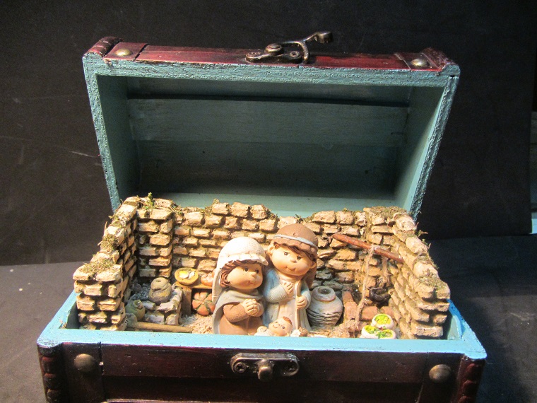 ...como tenía figuritas de Landy de 5.5 cms.....se me ocurrió hacer un belen dentro de una caja de madera. Como ya lo he terminado os adjunto fotos. Un saludo.