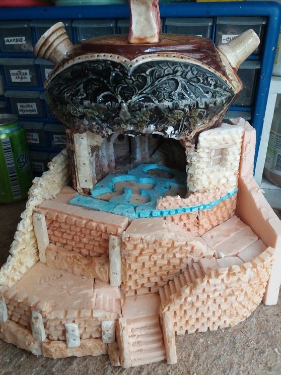...sigo ..jugando con el porespan y en estos últimos días....para el belen de una amiga y compañera que tiene figuras de 12 cms,....le he terminado una panadería,..una alfarería y una casa con pajar y leñera