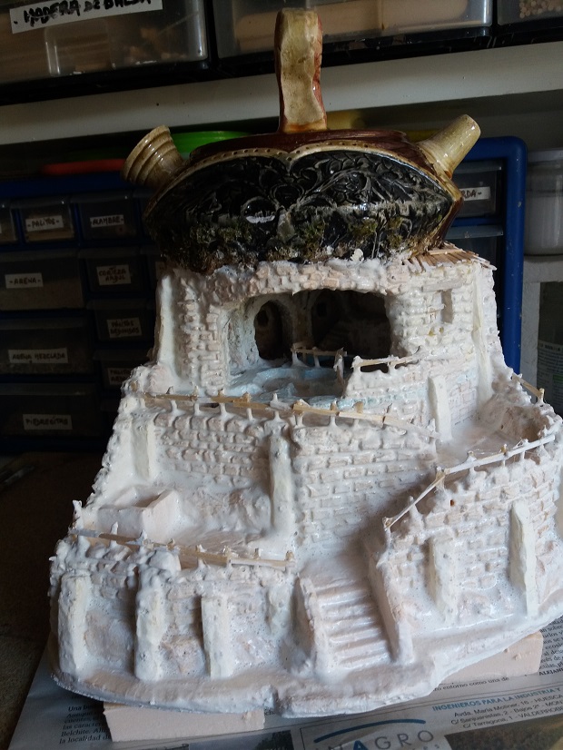 ...sigo ..jugando con el porespan y en estos últimos días....para el belen de una amiga y compañera que tiene figuras de 12 cms,....le he terminado una panadería,..una alfarería y una casa con pajar y leñera