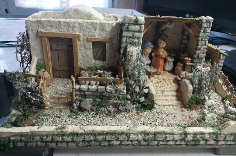 ...creo que fue en el 2005 (....solo han pasado 20 años, )cuando me mandaron hacer un belencito para una exposición de una Agrupación Artística que tuve que meterlo dentro de una cajoncito rectangular...pero luego acabó en mi trastero. Este año me acordé,...lo ví y me dí cuenta que tenía que pasar la ITV. He tenido que reformar varias cosas porque dentro de ese cajoncito no se veían. Está hecho con figuritas de Landi de 5.5 cms y mide 75 x 35 y 20 cms. de altura. Sigo diciendo que al natural se vé mejor, pues la cámara de mi móvil no es la correcta para sacar fotos en miniatura. Adjunto fotos.