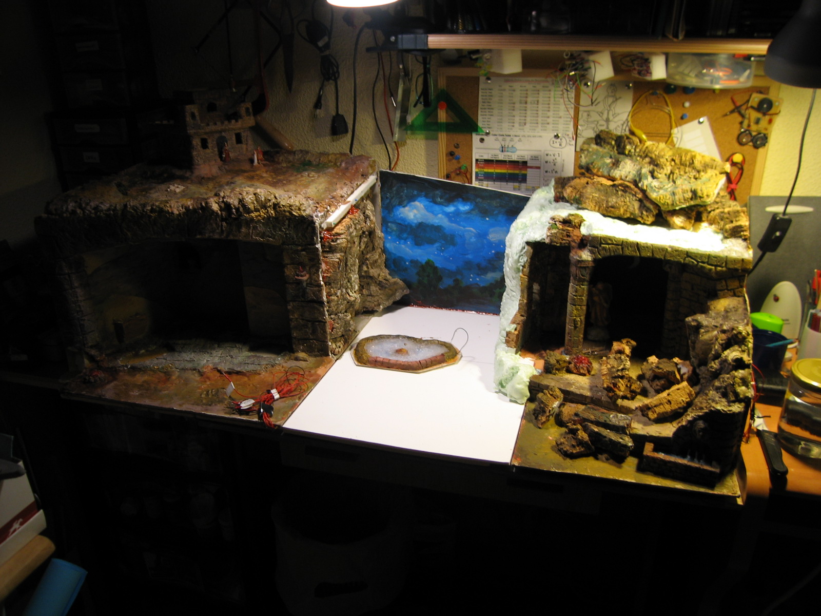 Presento unas fotos de mis trabajos previos al montaje de mi belén 2014.