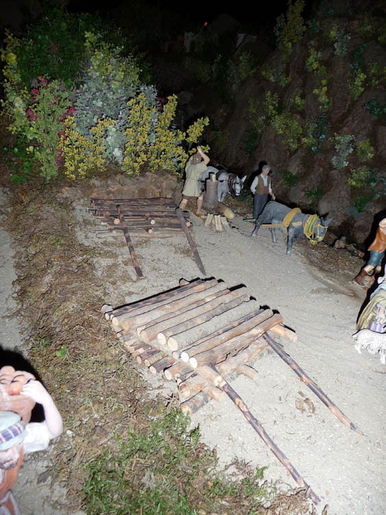 En este Belén de Monzón too hay otra escena que es otra tradición… y que sintiéndolo mucho por mi parte no hay fotico… me salieron mal vamos… En la Ermita de la Virgen de la Alegría… en sus vidrieras policromadas se narran 4 milagros o favores de la Virgen con algún privilegiado lugareño… pues en este Belén aparte de estar too como no la propia Ermita de la Virgen de la Alegría… too se representa el milagro de un carro que cayo por un terraplén y cuyos ocupantes salieron ilesos… buscando en directo… se ve un carro roto… ahí está la tradición.