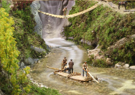 Si no estoy equivocado la almadía la hizo un socio de la asociación de Monzón pero las figuras son de 11 cm de palillo y las hicieron Ignacio y Ana de "CREACIONES TULA"