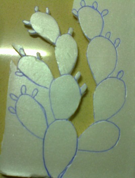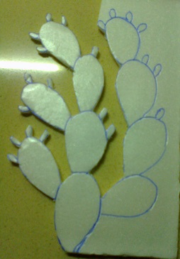 2º Recorto con el cutter toda la pieza completa incluidos lon tunos ó higos chumbos