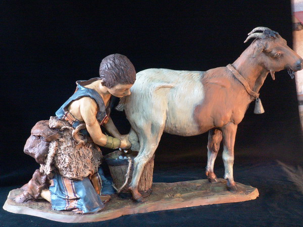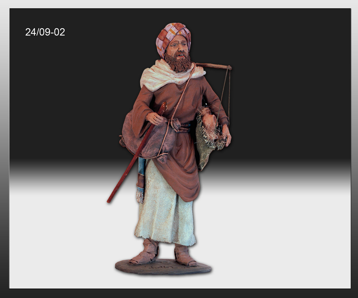 La figura del pastor con la mochilita, (se llama parihuela), al hombro es una interpretación de una figura de Ángela Tripi, y al igual que le ocurrió a Manolo Raposo, también fue por encargo de un señor que la vió en la Revista Taller de Belén nº 14 en la página 24 y le pidió que se la hiciera, por lo tanto creo que ambos se inspiraron en esta imagen para crear la figura, es una coincidencia pero es asi, la figura de Ángela Tripi es una preciosidad, por lo tanto creo que no será ni la primera ni la última persona que se inspire en ella para modelarla a su estilo.