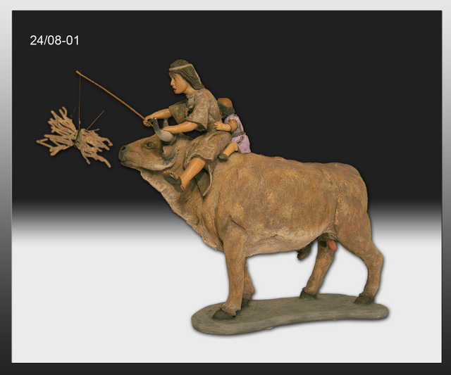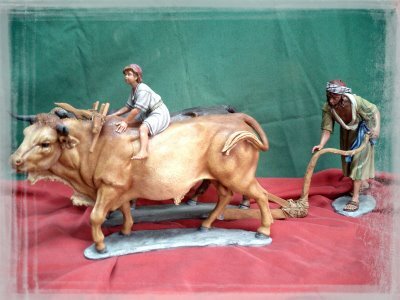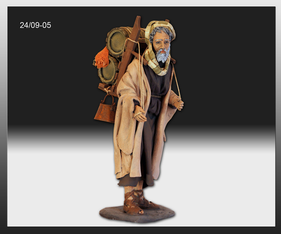 La figura del pastor con la mochilita, (se llama parihuela), al hombro es una interpretación de una figura de Ángela Tripi, y al igual que le ocurrió a Manolo Raposo, también fue por encargo de un señor que la vió en la Revista Taller de Belén nº 14 en la página 24 y le pidió que se la hiciera, por lo tanto creo que ambos se inspiraron en esta imagen para crear la figura, es una coincidencia pero es asi, la figura de Ángela Tripi es una preciosidad, por lo tanto creo que no será ni la primera ni la última persona que se inspire en ella para modelarla a su estilo.