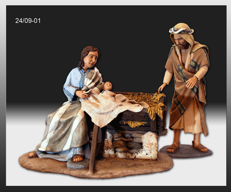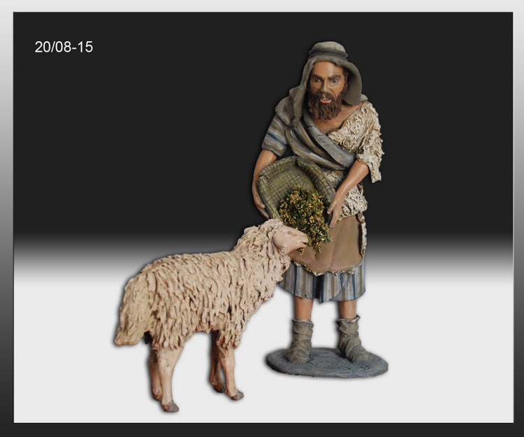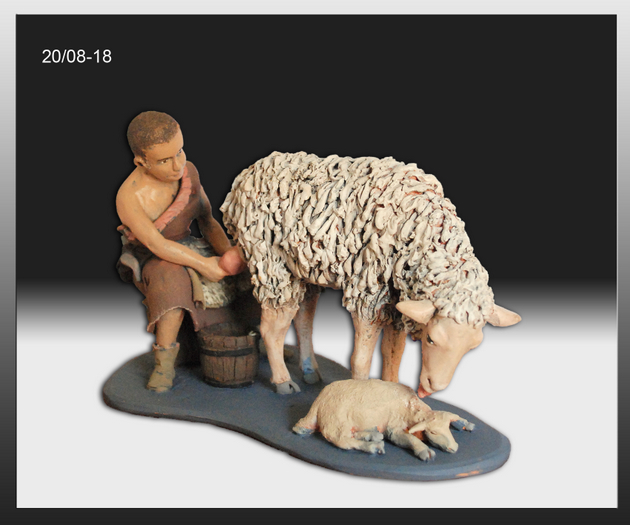 La figura del pastor con la mochilita, (se llama parihuela), al hombro es una interpretación de una figura de Ángela Tripi, y al igual que le ocurrió a Manolo Raposo, también fue por encargo de un señor que la vió en la Revista Taller de Belén nº 14 en la página 24 y le pidió que se la hiciera, por lo tanto creo que ambos se inspiraron en esta imagen para crear la figura, es una coincidencia pero es asi, la figura de Ángela Tripi es una preciosidad, por lo tanto creo que no será ni la primera ni la última persona que se inspire en ella para modelarla a su estilo.