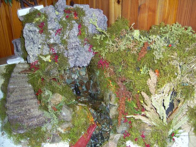 Una cascada hecha con cariño, (y con la bomba del lavarropas), enmarca una cueva que abrigara al niño Dios.