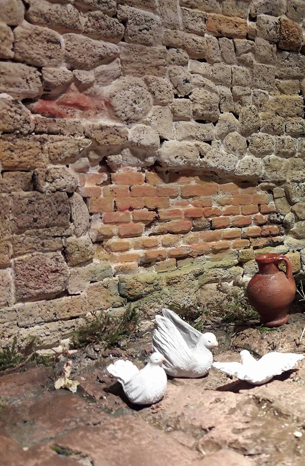 La luz que se proyecta sobre la sagrada familia y las palomas refuerzan la idea de espiritualidad que he pretendido dar en este Belén.