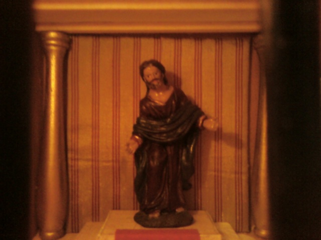 El castillo esta fabricado a escala lo que pasa que en el balcon hubo un pequeño problema con la luz,ya que si lo hacia como lo habia planteado en un principio no podia poner luz abajo en la entrada,entonces hize como unos escalones para suhbir al balcon (donde esta colocado el romano con la sentencia).