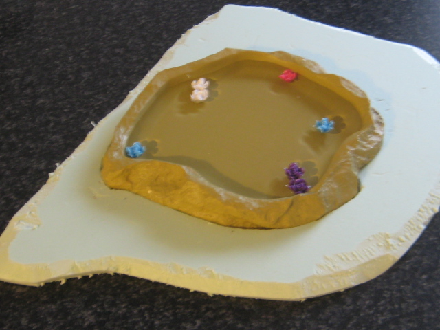 bueno, ahora en serio, este es el proyecto de oasis, en el fondo del recipiente, habrá arenilla y chinos(piedrecítas), aunque los alrededores los voy a pintar (el porex)color arena, se lo he puesto para poder pinchar juncos y palmeras, irá lleno de agua, y los nenúfares flotando, si de aquí, a entonces encuentro un barquito apañado, pues lo pondré (incapaz de hacer como los molaitos)su propia barca. Gracias a Dios los cabezones, si tienen camellos, comprare unos pocos (tampoco me veo haciendo camellos) jajajajajajajaj. Quiero opiniones.
