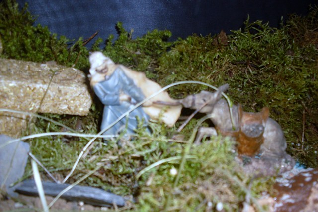 Tengo que añadir, que el fondo estaba sin terminar y los animales no son eses, por que los de verdad ( que eran del mismo material que las figuras) no los encontré y para salir del paso puse estos de juguete.