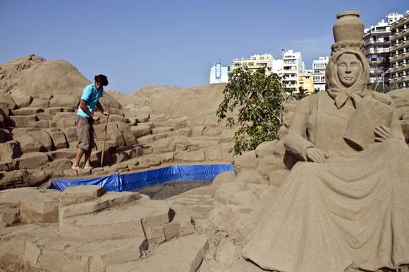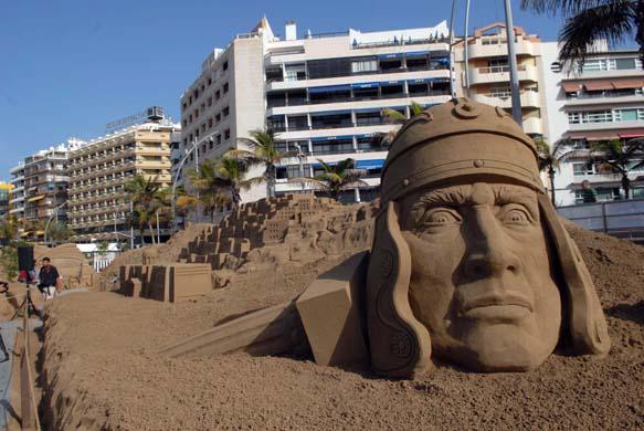 Los escultores daban ayer los últimos toques a la obra en medio de un sol de justicia, una imagen que el Ayuntamiento de Las Palmas de Gran Canaria quiere utilizar para vender el excelente clima del que goza esta tierra durante las fechas navideñas, de cara a su promoción turística.