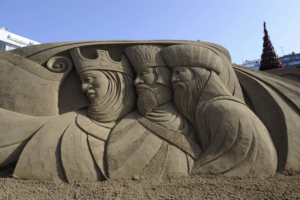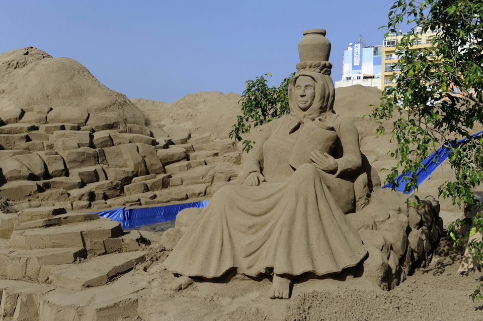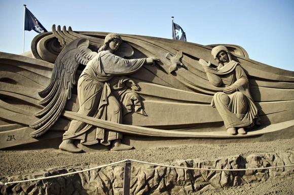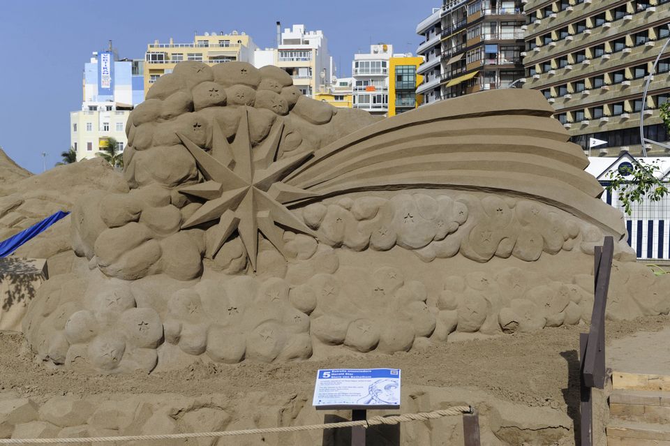 Mil toneladas de arena, agua y la destreza y la imaginación de ocho de los mejores escultores de arena del mundo han permitido levantar en menos de veinte días el Belén de Arena de Las Canteras, que este año incluye muchísimos elementos canarios, como los Riscos, el Roque Nublo, las dunas de Maspalomas o alfareras que evocan a las mujeres pintadas por Jorge Oramas. Las escenas canarias conviven con las tradicionales del Belén, como diferentes recreaciones de la aldea donde nació Jesús. Justo enfrente, en el paseo se alza un enorme árbol de Navidad, en el que los ciudadanos han podido colgar sus deseos para el año que está a punto de llegar.