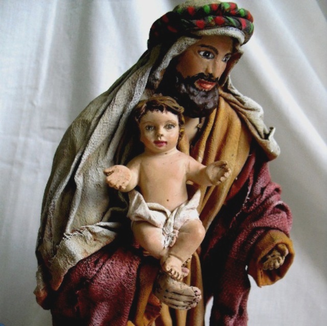Hola Gonzalo (Borne) muchas gracias, me alegro que te haya gustado y sí parece el bautizo,jajaja ahora lo cojo yo, ahora tú.... y el niño lo que quiere es irse a la cuna a dormir......Lo hice así porque de esta manera puedo cambiar la escena según me parezca y además se sale de lo corriente..es decir, el niño en la cuna y la Virgen y S. José mirándolo con cara de adoración, así me parece más una familia normalita, como las de ahora, pero con otras ropas jajajaja.