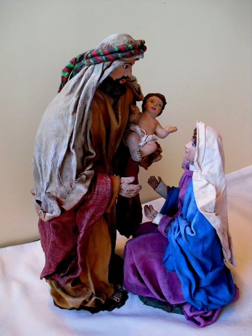 Hola Gonzalo (Borne) muchas gracias, me alegro que te haya gustado y sí parece el bautizo,jajaja ahora lo cojo yo, ahora tú.... y el niño lo que quiere es irse a la cuna a dormir......Lo hice así porque de esta manera puedo cambiar la escena según me parezca y además se sale de lo corriente..es decir, el niño en la cuna y la Virgen y S. José mirándolo con cara de adoración, así me parece más una familia normalita, como las de ahora, pero con otras ropas jajajaja.