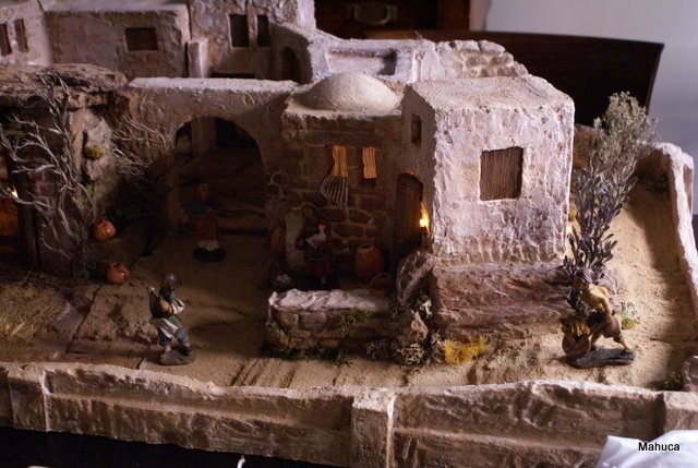 Galtxa, gracias. La pintura ya sabes a quien se lo debo, así que mil gracias. He estado viendo las fotos que hice y.........:o  creo que no tengo gran angular, así que hasta que suba a casa de mi vecina para hacer las fotos definitivas pongo tres más que uniéndolas dan el conjunto entero. En la foto 1582 se ven el belén entero pero de lado claro. Saludicos