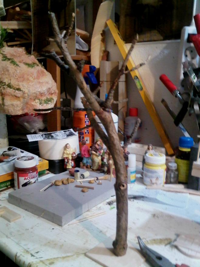 Hola JOse Antonio, si que es un señor tronco, jjaja, y seguro que te da tiempo, hay muchas técnicas para hacer las copas dependiendo de como quieras hacerlas, con espuma de floristeria picada, tomillo, flores secas, musgo natural etc o también con hojitas artificiales siempre y cuando le quites el brillo del plástico así queda más natural; en una tarde te pones y lo terminas para que luzca en tu belén.