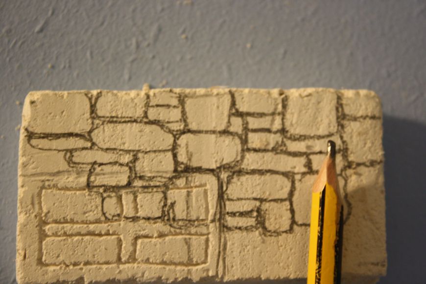 Podemos dibujar un poco la piedra con lápiz, para facilitar el grabado con el punzón.