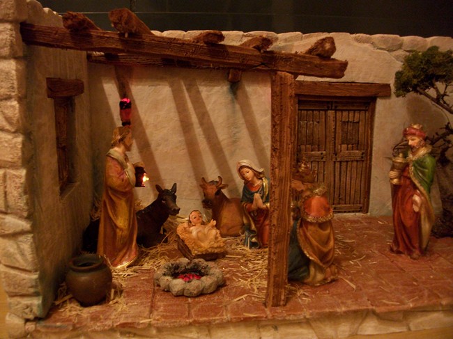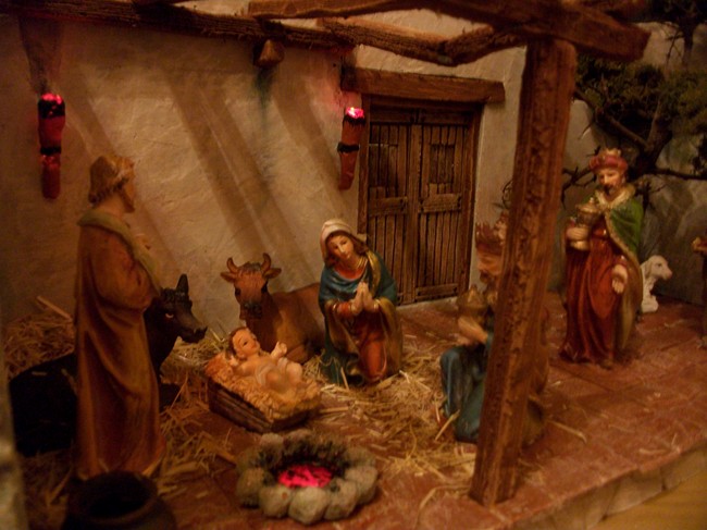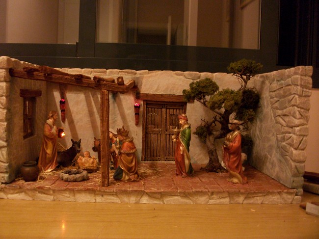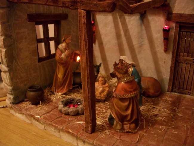 Aquí os mando una copia del belén de Galtxa (a mi manera).Era para mi cuñada que disponía de poco espacio,las figuras son de 14 cts. de los chinos,las medidas son 60x40x30,al San Jose le taladre en la base y pase un cable atravesando el cuerpo hueco,hice otro al farol y conecte un led, para las antorchas utilice las cánulas de la silicona poniéndoles también un led de 220.Espero que os guste,si tenéis alguna pregunta decírmelo.