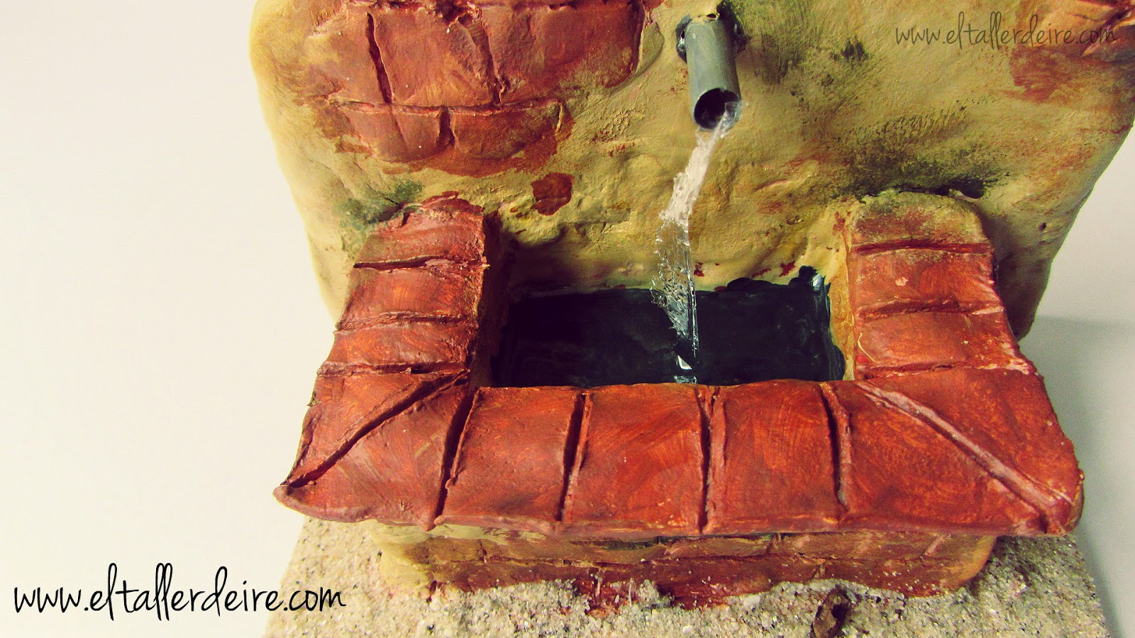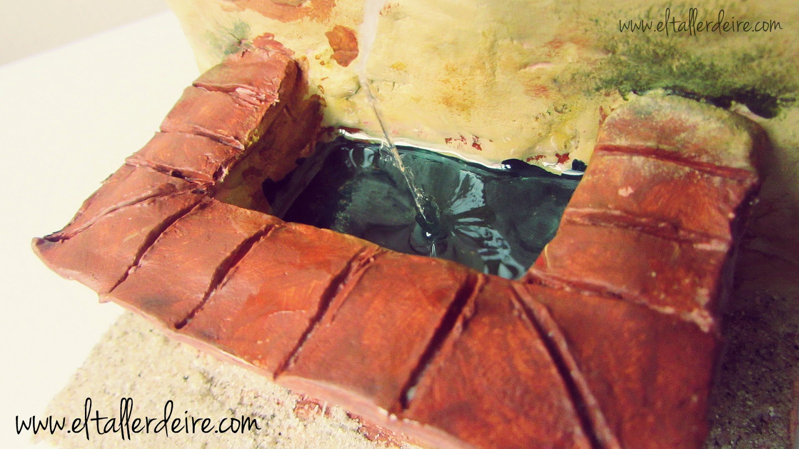 ¡Hola! Por fin me animo a enseñar alguno de mis trabajos. Ésta es una fuente que he hecho con materiales muy básicos para enseñar también a simular el agua y que ésta parezca realista. Yo lo hago con barniz de acabado cerámico, lo llevo haciendo así desde hace más de un año y me va muy bien esa técnica.