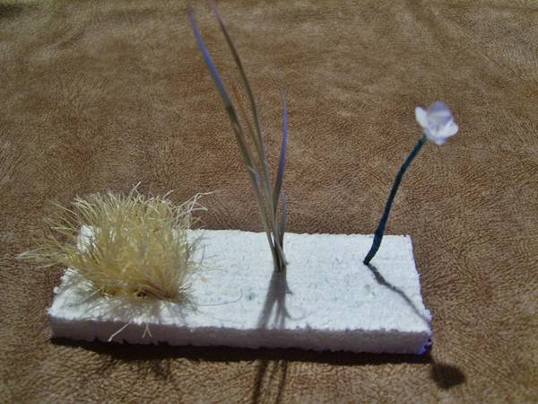 Las matas son hechas con las pequeñas vegetaciones que habíamos encontrado en internet, te mando una fotito para que veas el tamaño de la jaima.