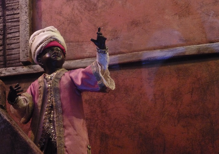 Corría inquieto por la bulliciosa Via del Pellegrino, gritando y saltando. El viejo Pulcinella molestaba a los vecinos recitando versos y frases inconexos; vivía en su mundo, como si la vida fuese una obra de teatro eterna. De pronto algo le llamó la atención e hizo que se parase. Al fondo del oscuro corredor del Cortile dell' Arco degli Acetari, donde tenían sus puestos los aguadores, vio una luz intensa y cegadora que le llamaba a entrar en el patio. Al entrar presenció la escena y se estremeció.
