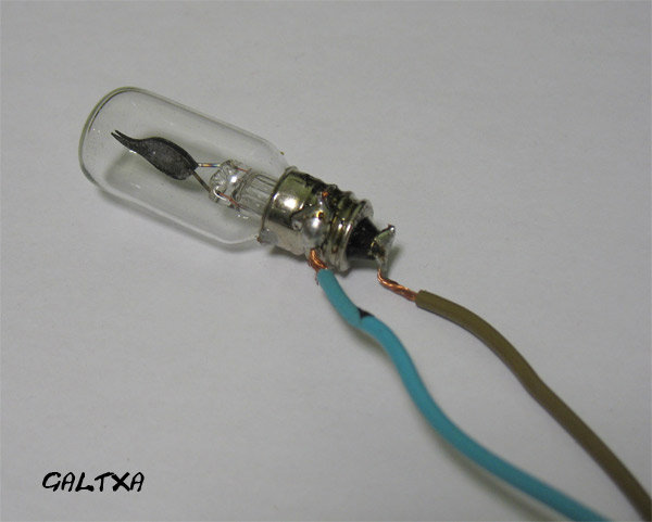 Esta bombilla como era muy grande el casquillo le he soldado los cables a la rosca.