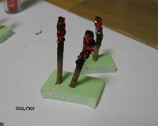 Imedio ,los troncos los hemos quemado por la punta con un mechero y luego