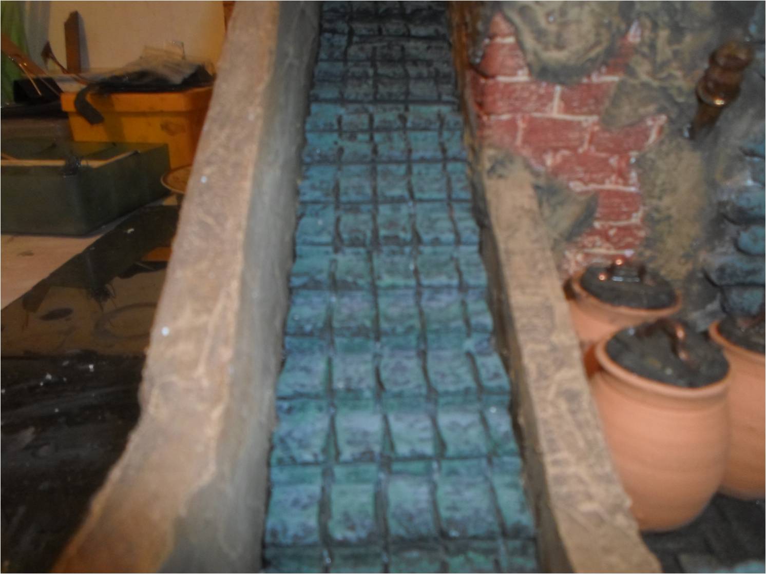 2014-04-07 20.37.07.jpg (427KB - 186 descargas)yo no se si es por la foto , pero por ahi le haria un toque con pincel seco dandole un poco mas de luz alas piedras y en los ladrillitos alguna chorreadita de verdin