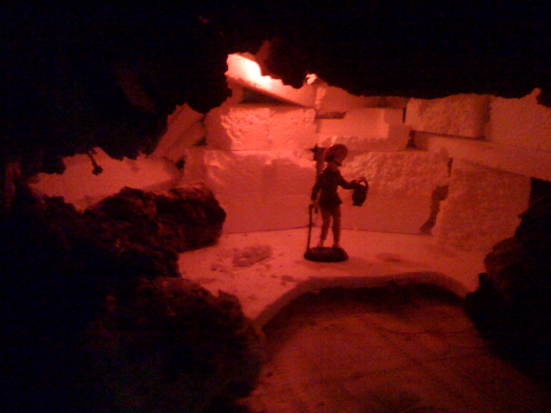 En la parte superior (techo) puse una bandeja perforada y destrozados como depósito de agua recogida, el lado echo con yeso para arreglarlo así:
