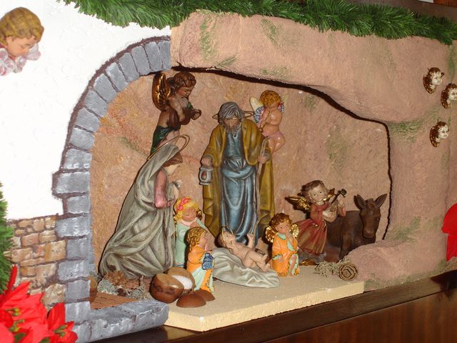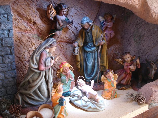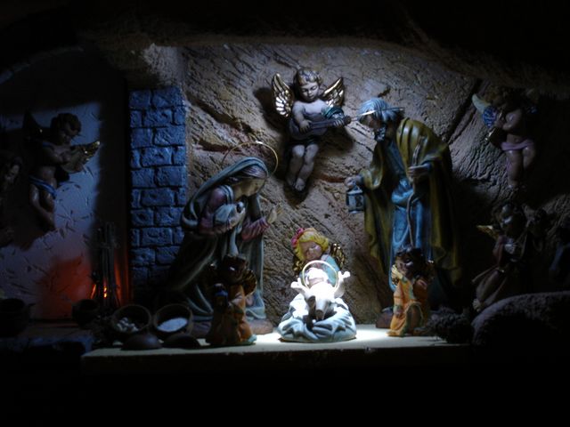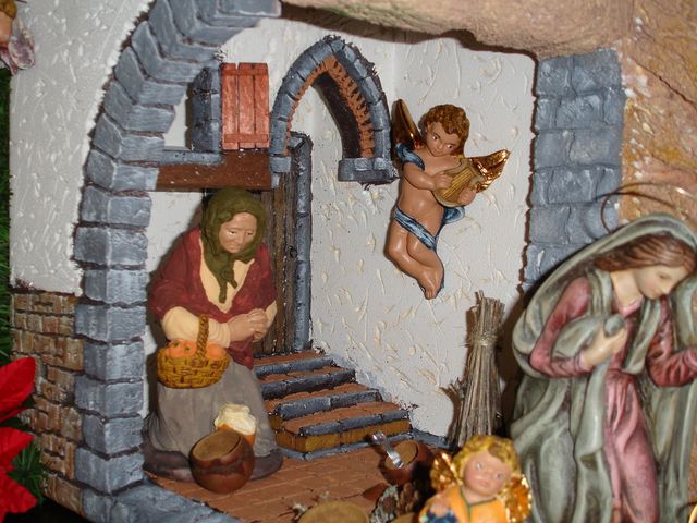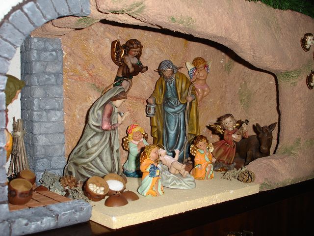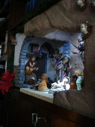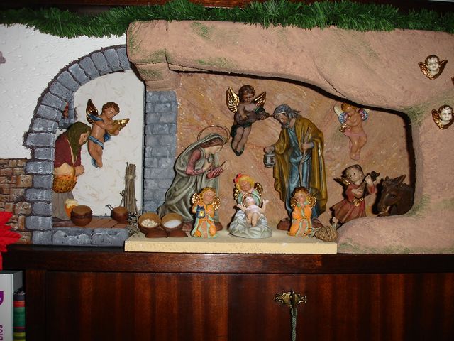 El tamaño es muy pequeño ya que se encuentra dentro de una estantería y tiene estas medidas: 80 x 30 x 33. Las figuras principales son de 21 cm. La mayoría, salvo las del Misterio que son compradas y no sé su autor, son pintadas por mí. Espero vuestras sugerencias para poder seguir aprendiendo.