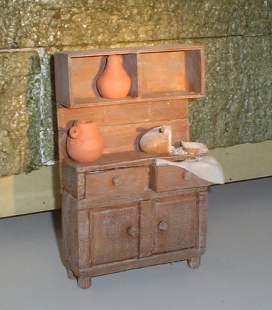 Hice un aparador con una mescla de porexpan y madera de balsa. Lo pan lo hice de porexpan de lo que viene en las cajas de los aparatos domésticos. Espero os guste.