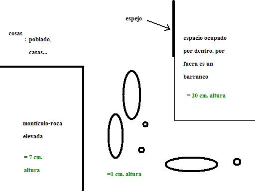203-Colocación del pueblo, donde se con más detalle la colocación del pueblo y su paisaje anterior. A la izquierda podemos observar el fondo del pueblo, el celaje, que se plasma en una cartulina blanca que iluminaremos ad-hoc.