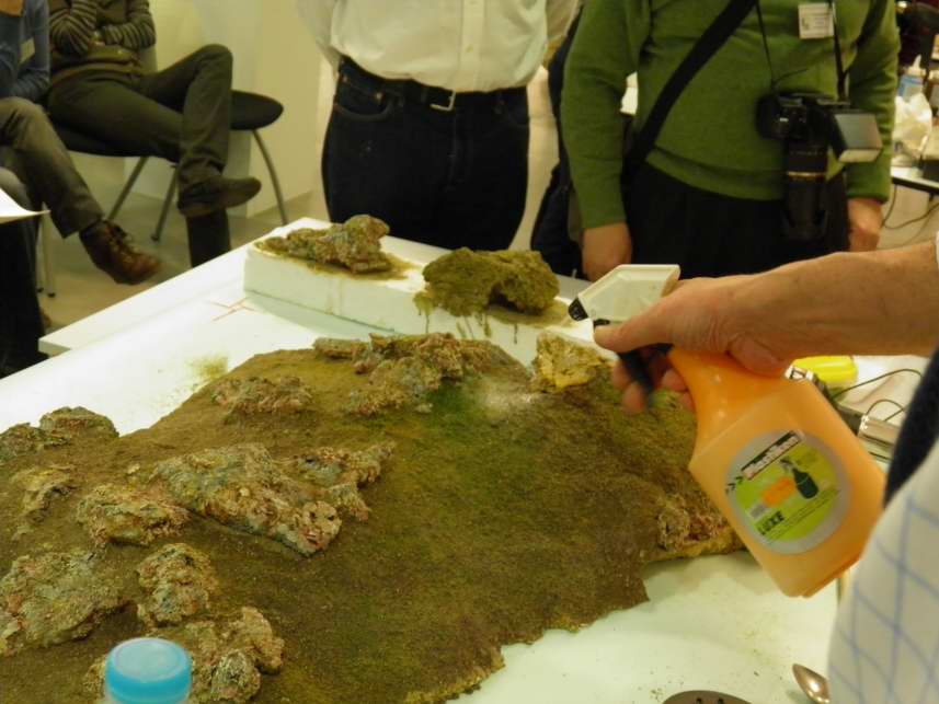 4-Una vez seco, toca decorar con vegetación, para ello Ramón usa la famosa técnica que utilizan para las maquetas ferroviarias. Los materiales se pueden comprar en tiendas especializadas de modelismo. Esto si no os importa os mando un enlace muy bueno donde se explica todo al detalle.
