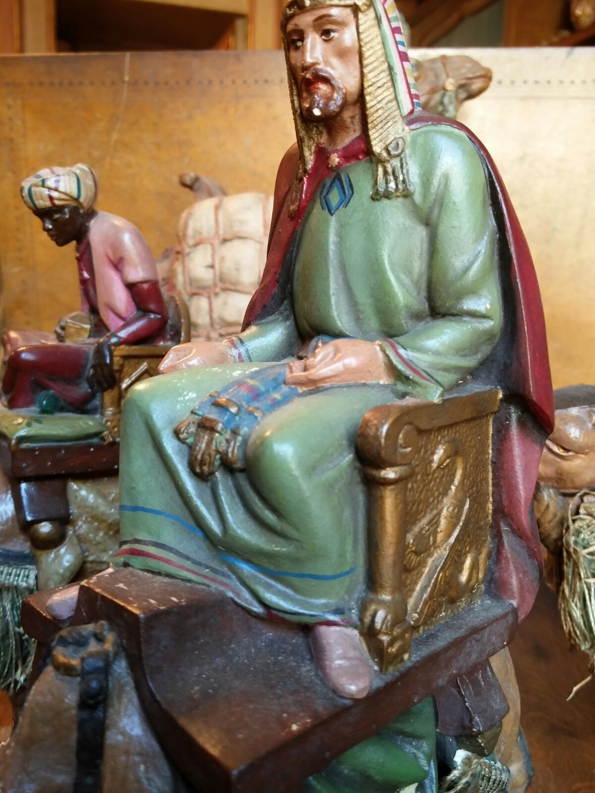 Tengo unas 30 figuras de 25, 30 y 1 camello de 40 cm.Son de mi abuelo que nació en 1888 y hacia pesebres que ocupaban toda una habitación de matrimonio.